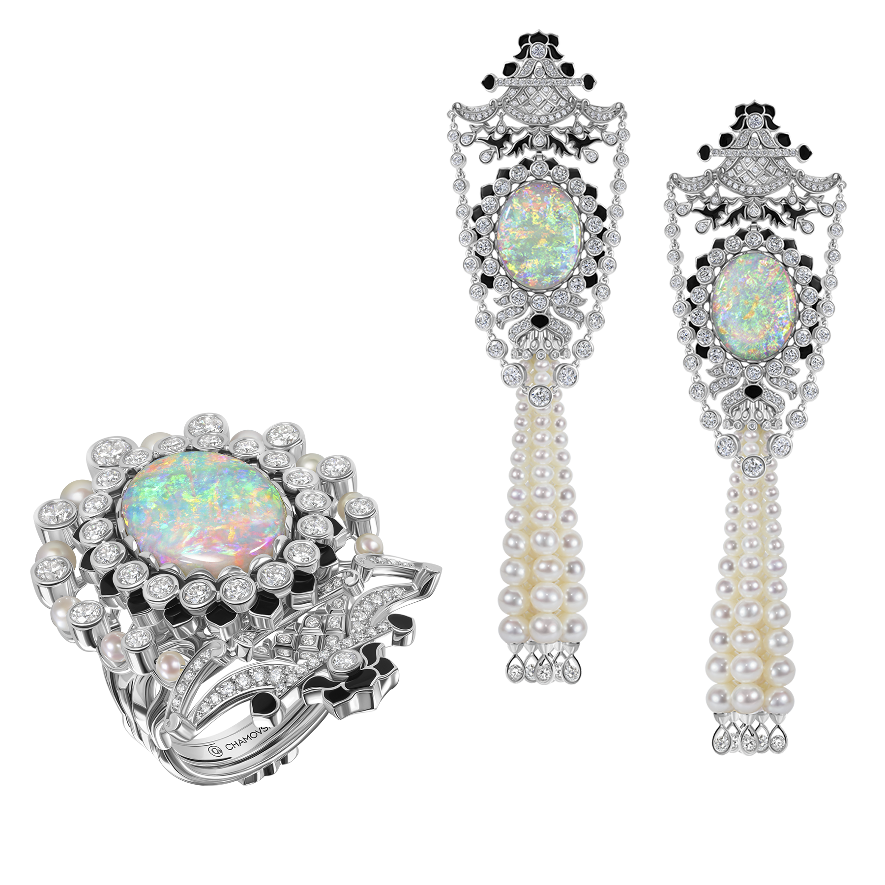 Ювелирный дом CHAMOVSKIKH в производстве украшений использует самоцветы лучших месторождений мира. Опалы, которыми инкрустируются украшения бренда, добываются в Австралии и Эфиопии, их качество подтверждено сертификатами авторитетных геммологических лабораторий. В собрании ювелирного дома CHAMOVSKIKH есть великолепный и очень редкий экземпляр - черный австралийский опал весом 62,26 ct. Камень такого порядка - истинное сокровище для искушенных особ.