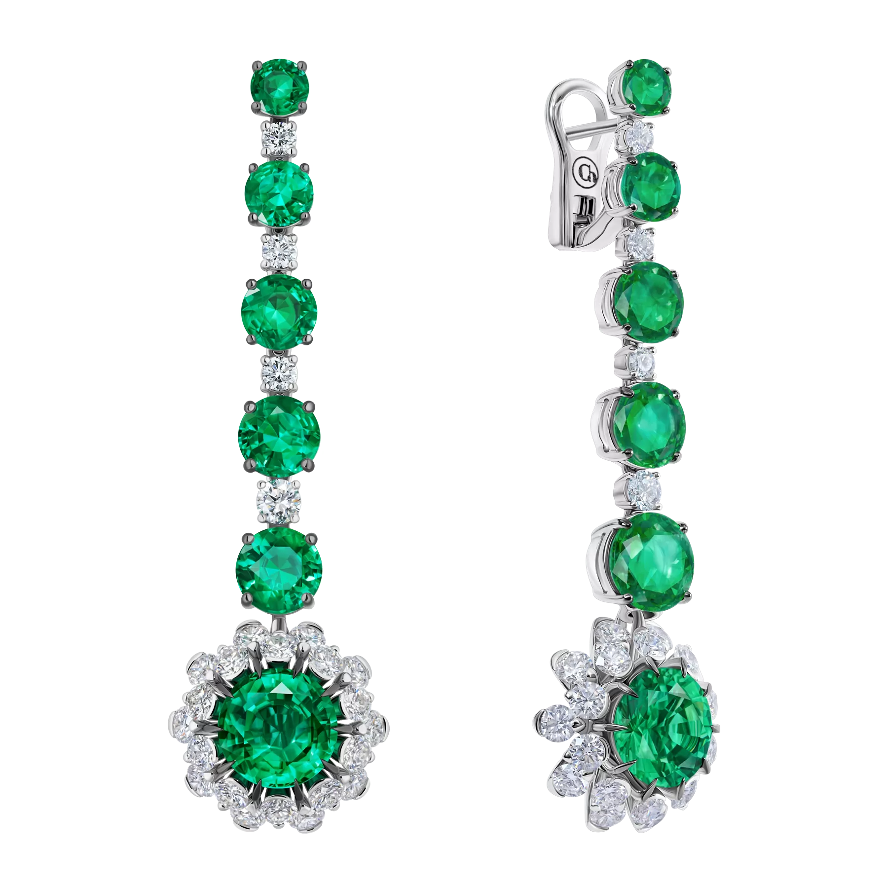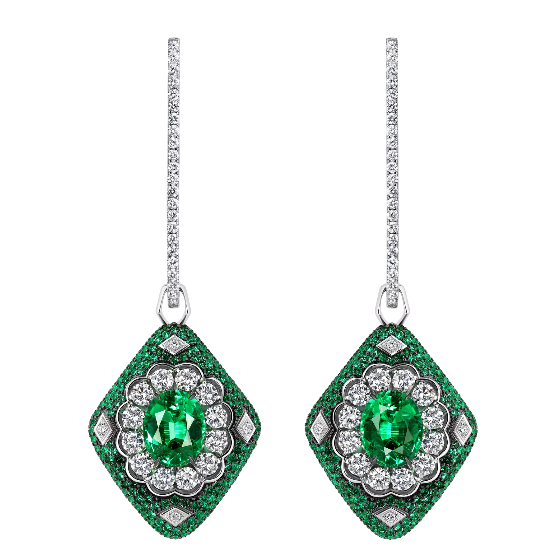 Серьги-трансформеры из коллекции «Княжна», центральный камень: 2 изумруда, огранка «овал» 5,09 ct, инкрустация: 122 бриллианта 3,12 ct, 424 изумруда 2,24 ct